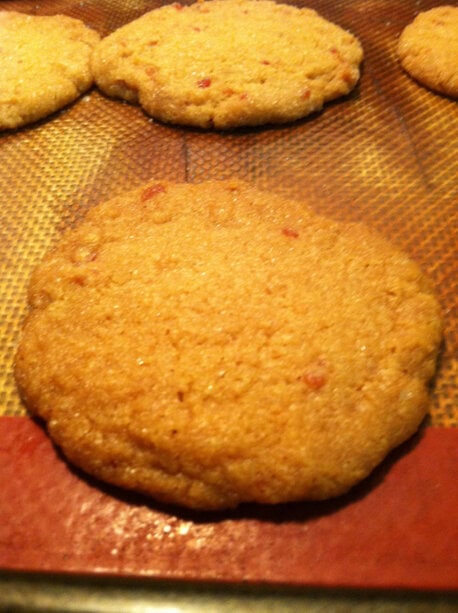 So I know that I promised non-peanut butter cookies this time around, but when I get a cookie challenge, I can’t turn it down. Peanut butter and bacon was the challenge this time around. I browsed a bunch of different recipes on various blogs, and settled on this variation. I had played around with the idea of adding chocolate chips or covering the chocolate in bacon, but I figured let’s keep it simple for my first foray baking with bacon. On the plus side, these are gluten free! So while my nut-allergy brother can’t indulge in these, my celiac mom can 🙂