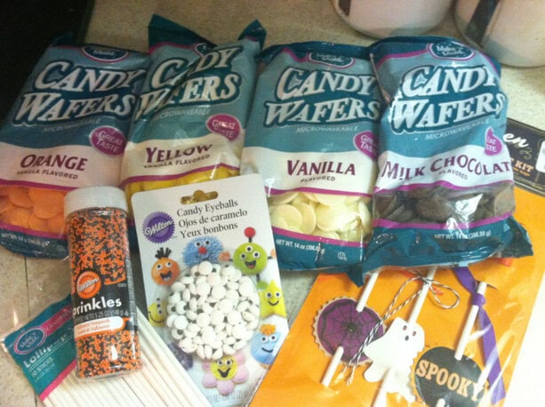 Put them back in the fridge or freezer to let them fully harden. You can stick the cake pop sticks in them for serving as well if you want. Sarah and I were ambitious and tried to create some other cake pop monsters and candy corn. Here’s what they looked like: