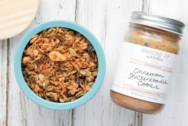 So if your New Years resolutions include eating a bit healthier definitely try this recipe for homemade Snickerdoodle Almond Butter Granola. And if you’re looking to do some good this year, be sure to check out Ground Up and #spreadgood.